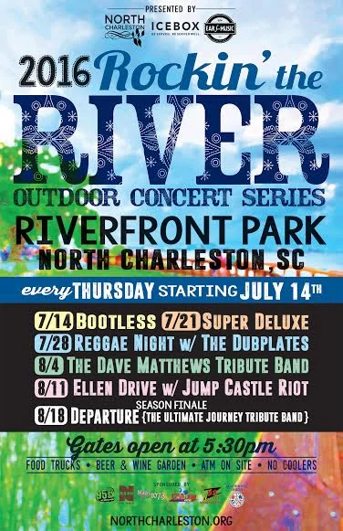 Ah, how we have missed Riverfront Park in North Charleston. It's almost time to go take in the breathtaking views of the Cooper River all around you at the Rockin' The River concert series. RTR will begin on Thursday July 14th and continue through Thursday August 18th.