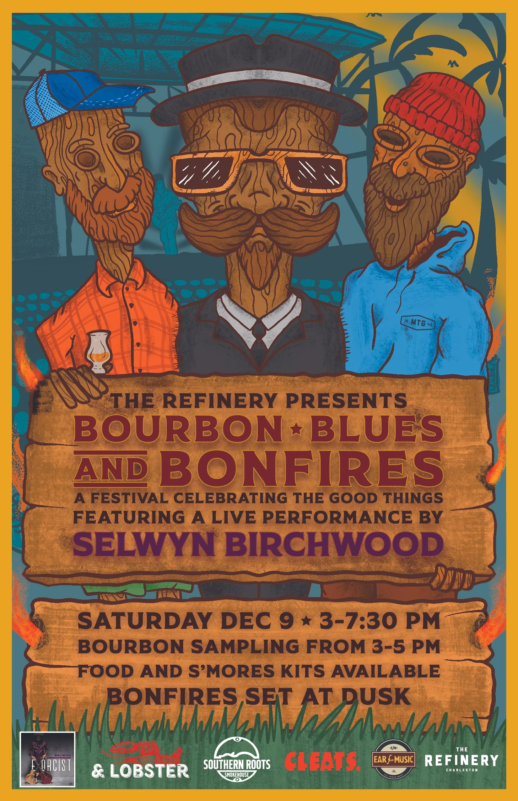 Complimentary bourbon tastings will be available from 3-5 p.m. with a live performance by renowned blues guitarist Selwyn Birchwood to follow. Multiple bonfires will be lit around dusk to warm up beside and s’mores kits will also be available for purchase.